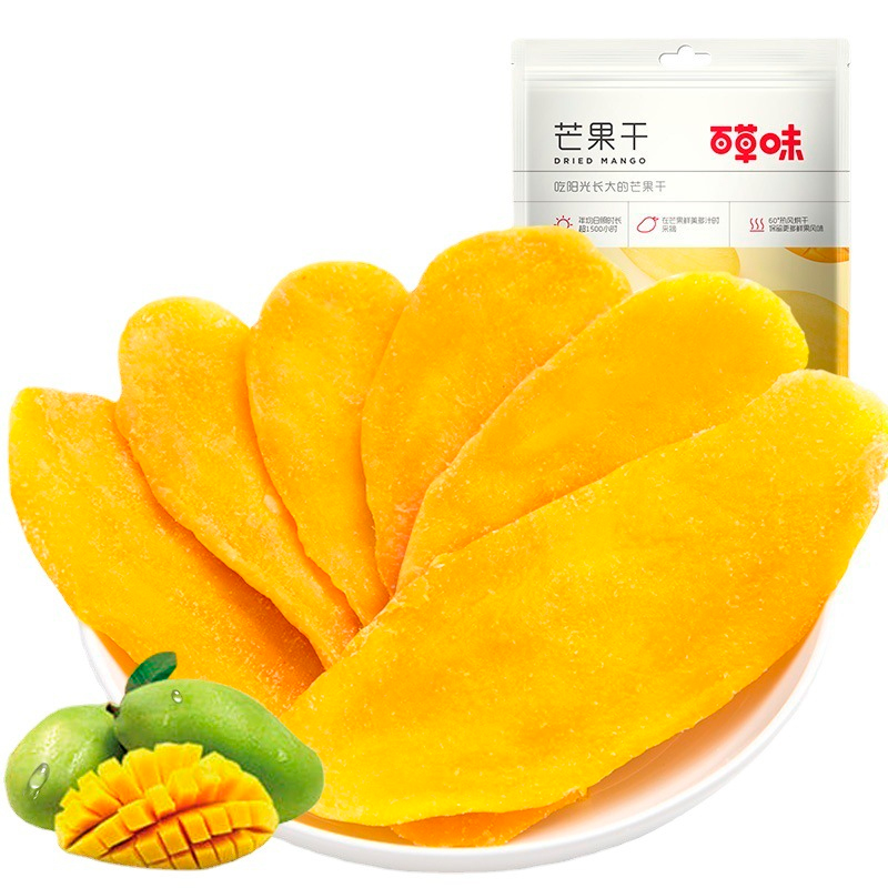 Натуральный сушеный манго Baicao. В его плодах содержится большое количество кальция, фосфора, железа, цинка, бета-каротина, играющего в организме роль антиоксиданта и оберегающего клетки кожи от повреждающих факторов внешней среды. Плод стимулирует деятельность кишечника и почек, защищает раздраженную слизистую оболочку желудка, улучшает обмен веществ, восполняет потребность организма в калии и заметно снижает кровяное давление, очень полезен для зрения. Сухофрукт манго можно использовать в диетотерапии атеросклероза, так как активные вещества.