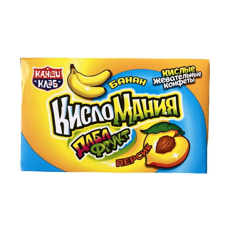 —Жевательные конфеты Кисломания дабл фрукт банан и персик 14г