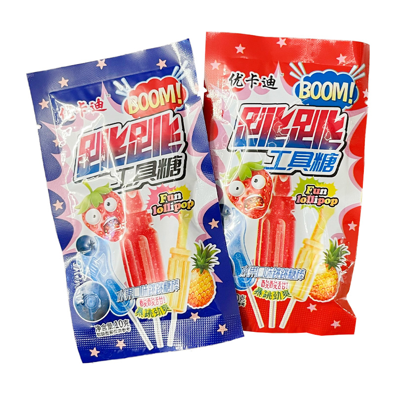 Леденцы на палочке с кислой шипучкой-взрывашкой с фруктовым вкусом.