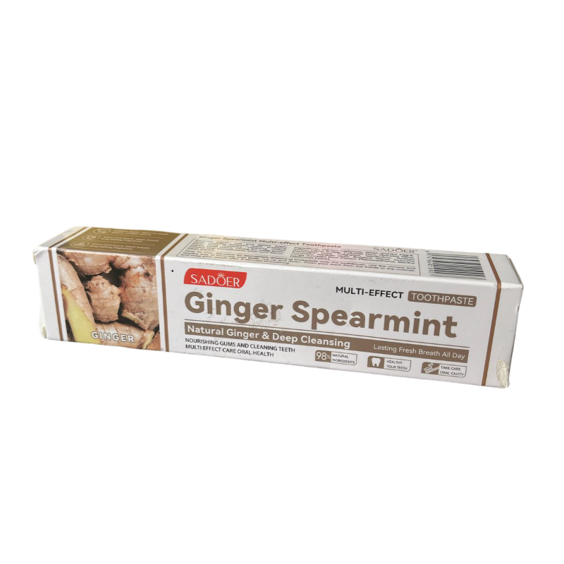 Мятная зубная паста Sadoer обеспечит длительное ощущение чистоты и свежести. Благодаря своим отбеливающим свойствам, она подходит как для тех, кто следит за эстетикой своей улыбки, так и для преданных поклонников натуропатии, учитывая положительное влияние имбиря на здоровье.