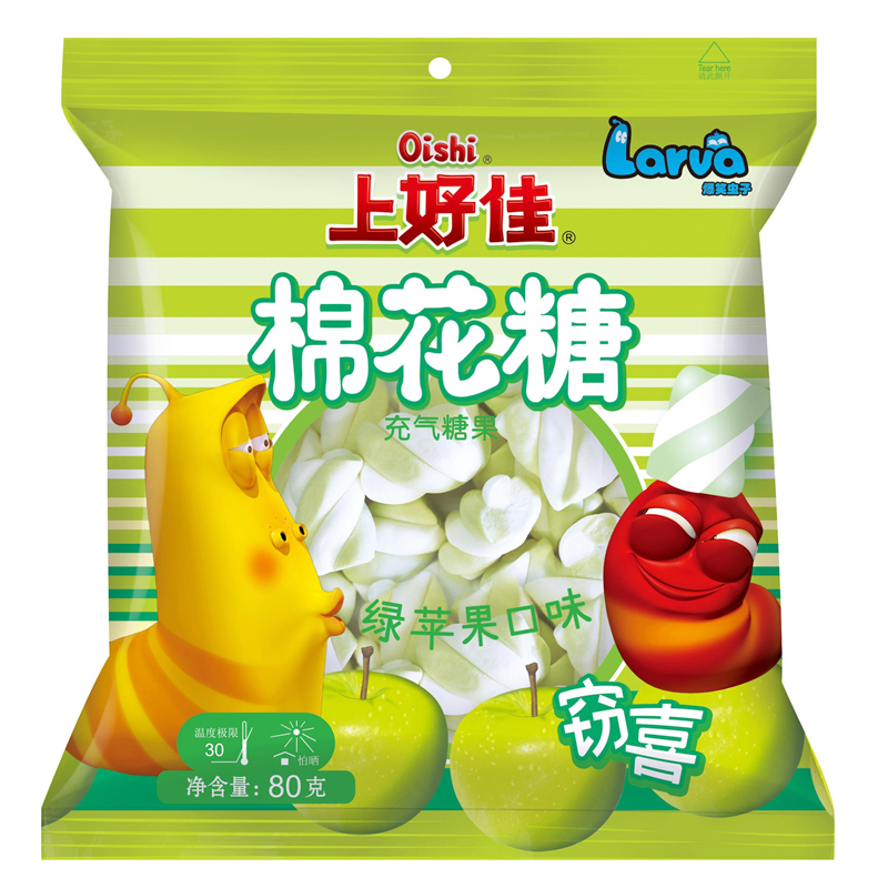 —Маршмеллоу Oishi Larva Marshmallow Green Apple со вкусом зеленего яблока 80г